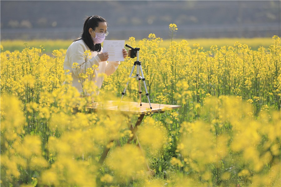 Um professor dá aulas de botanica via transmiss?o ao vivo em Hangzhou, capital da província de Zhejiang.