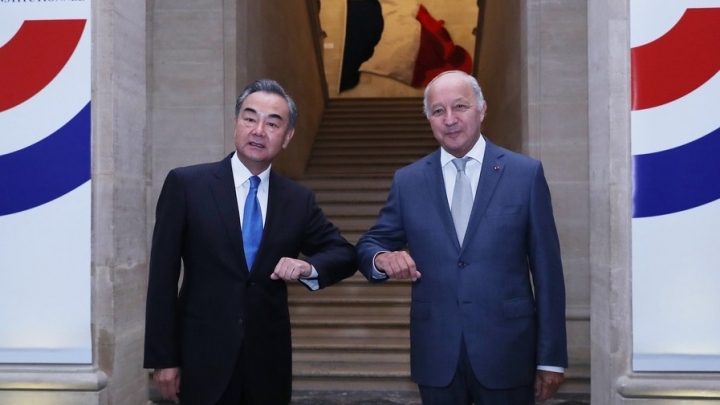 Lidar com a pandemia de COVID-19 e seu severo impacto no mundo exige solidariedade, afirmou Wang ao conversar com o ministro francês para os Assuntos Europeus e Exteriores, Jean-Yves Le Drian.