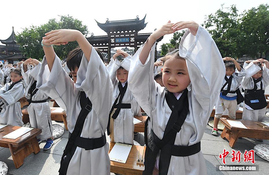 Os calouros do primeiro ano da Escola Primária do Templo de Confúcio de Nanjing foram ao Sal?o Dacheng do Templo de Confúcio para realizar uma cerim?nia de abertura. As crian?as receberam a educa??o cultural tradicional de "respeitar etiqueta" por meio de cerim?nias tradicionais e, portanto, tornaram-se formalmente alunos, no dia 31 de agosto.