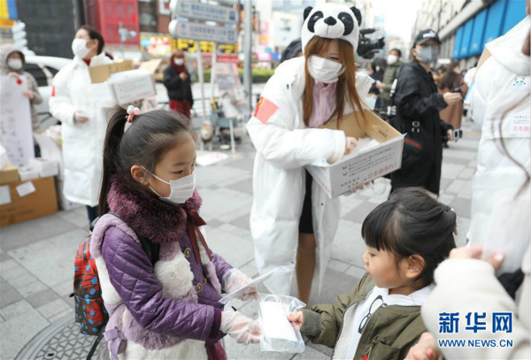 Nas ruas de Tóquio, uma jovem chinesa com um chapéu em forma de veado segurava na m?o uma caixa de papel?o com as palavras em japonês "solidariedade de Wuhan" e distribuía máscaras aos transeuntes. Ela disse que a sua a??o tinha como objetivo conscientizar para a preven??o da epidemia e agradecer aos japoneses pelas máscaras que doaram à China. A boa a??o da jovem emocionou inúmeros internautas.