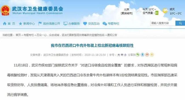 As autoridades de saúde de Wuhan, capital da Província de Hubei, centro da China, anunciaram nesta quarta-feira que uma amostra de embalagem de carne bovina congelada importada deu positivo para Covid-19.