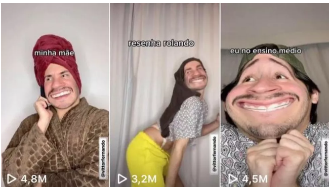 Segundo Vittor, vídeos que abordam situa??es em família s?o os que fazem mais sucesso. “As pessoas sempre se identificam quando interpreto a m?e, porque a gente brinca que m?e é tudo igual, só muda o endere?o”, disse Vittor.