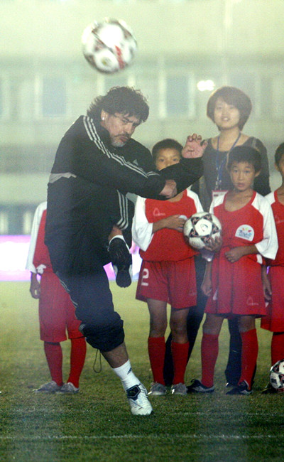 Maradona visitou a China pela primeira vez em 1996 para jogar contra o Beijing Guoan, ao servi?o do Boca Juniors, em um amistoso internacional que atraiu dezenas de milhares de torcedores chineses para vê-lo jogar no Estádio dos Trabalhadores. Em 2003, após sua aposentadoria, Maradona visitou a China pela segunda vez.