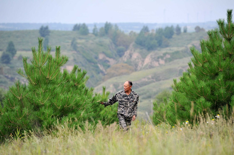 Li Yunsheng verifica as árvores que plantou na montanha Matou em Shuozhou, província de Shanxi, no norte da China. Li planta árvores desde 2002 para combater a desertifica??o e consegue lucrar com isso.