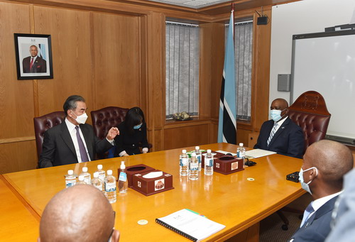 O conselheiro de Estado e ministro das Rela??es Exteriores da China, Wang Yi, e seu homólogo de Botsuana, Lemogang Kwape, assinaram o memorando de entendimento entre os dois governos depois de conversa??es em Gaborone.