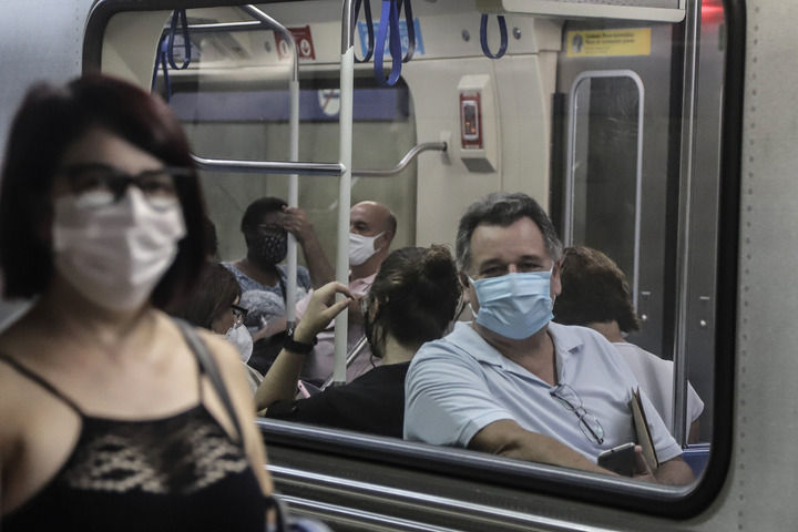Cidad?os usam máscaras no metr? de S?o Paulo, Brasil, em 28 de janeiro de 2021.