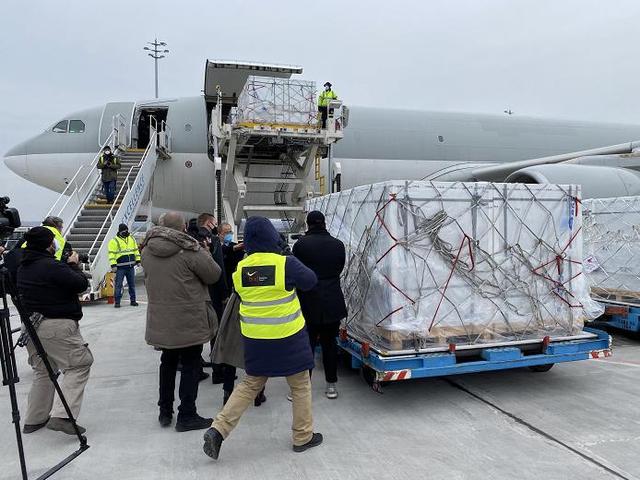A remessa foi recebida no Aeroporto Internacional Liszt Ferenc por Tamas Menczer, secretário de Estado do Ministério das Rela??es Exteriores e Comércio da Hungria e o embaixador da China na Hungria, Qi Dayu.