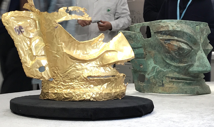 Entre as importantes descobertas culturais est?o máscaras de ouro e bronze, utensílios de bronze, mais de 100 presas de marfim, tecidos e jade, entre outros artefatos.
