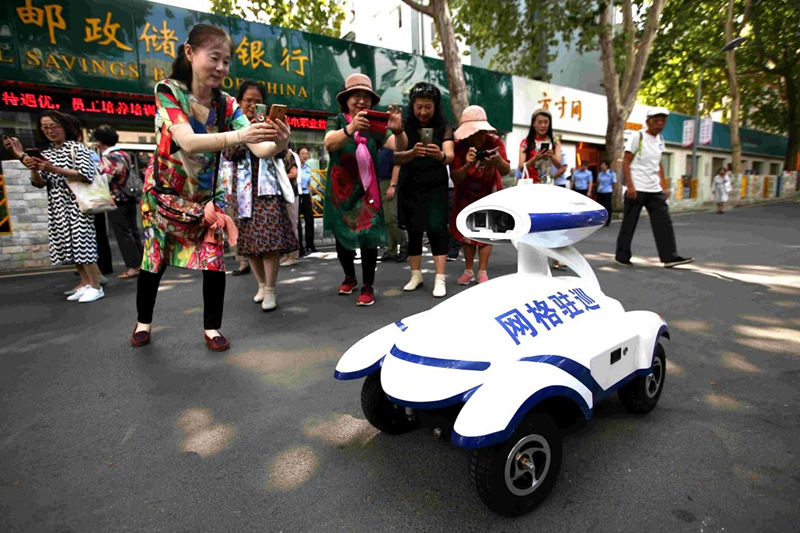 Rob? inteligente realiza patrulhamento no distrito de Leshan, cidade de Jinan, província de Shandong, em 21 de julho de 2020. Hao Xincheng/ Diário do Povo Online