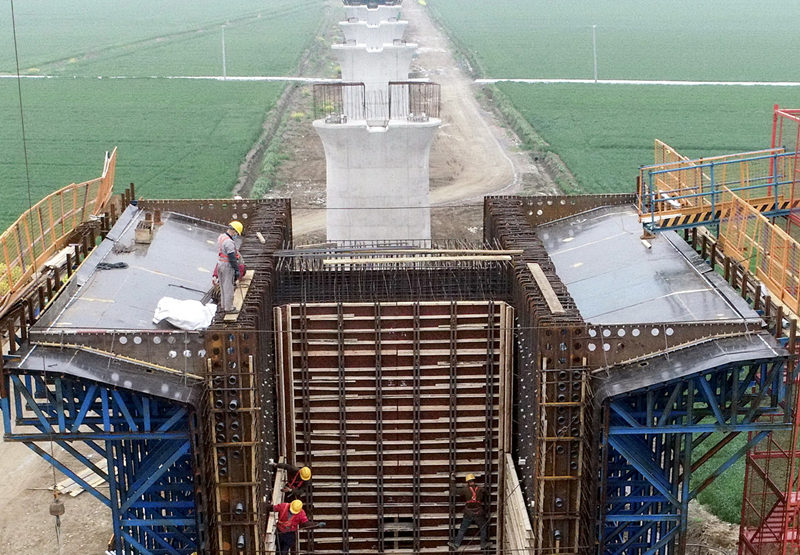 Trabalhadores constroem uma ferrovia intermunicipal em Huai'an, na província de Jiangsu. Após a conclus?o, a ferrovia conectará a cidade com Nanjing, capital da província. [Foto de Zhao Qirui / para China Daily]