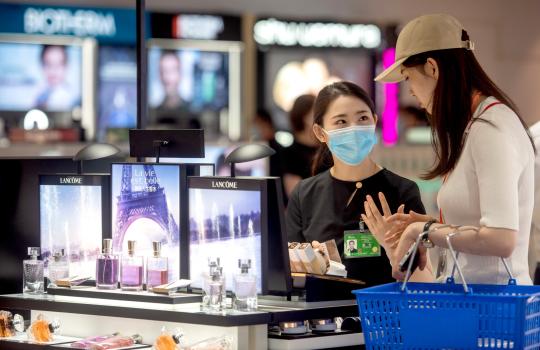 Uma turista faz compras numa loja duty-free na província de Hainan. (Foto: Meng Zhongde para China Daily)