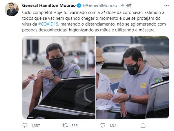 Em 27 de dezembro do ano passado, Mour?o testou positivo para o novo coronavírus. Em 29 de mar?o deste ano, o vice-presidente, de 67 anos, recebeu a primeira dose da vacina.