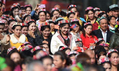 As pessoas participam de um festival de cultura e turismo com o tema da cultura Dolan e Qiuci no condado de Awat, na prefeitura de Aksu, Regi?o Aut?noma de Uigur de Xinjiang, noroeste da China, em 25 de outubro de 2019. (Foto: Xinhua)