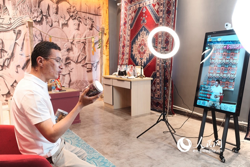 Assim como Dilnur, Ershat Ibrahim, de 30 anos, também é um influenciador online. Sua loja comercializa produtos agrícolas de Hotan, sendo ele também um criador de conteúdo que faz vídeos a publicitar os mercados locais, festivais agrícolas e arte local.