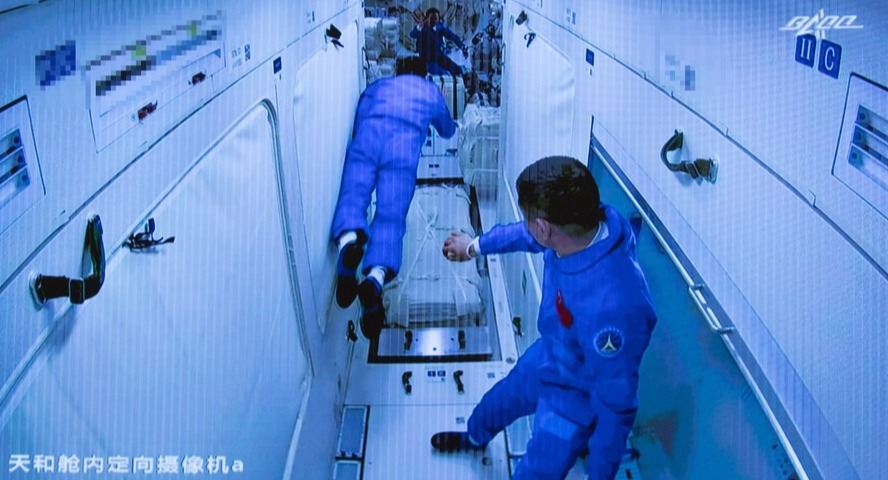Nie e sua tripula??o entraram em Tianhe na tarde de quinta-feira (17), depois que sua espa?onave Shenzhou XII atracou com o módulo no início do dia.