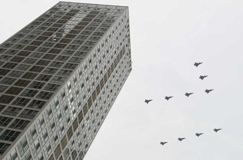 Aeronaves militares na forma??o de "1° de julho" sobrevoam o céu em comemora??o ao centenário do PCCh em Beijing em 1° de julho de 2021. [Foto por Wei Xiaohao / China Daily]
