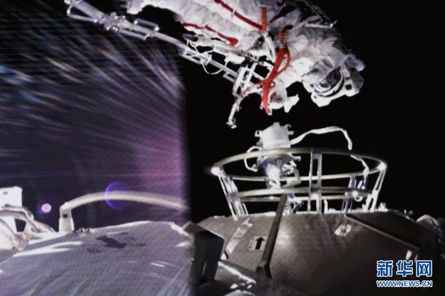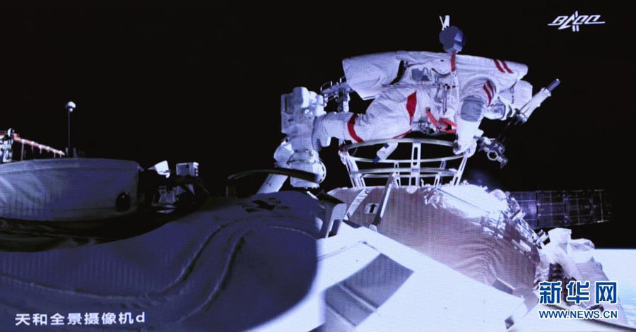Após cerca de 7 horas de manobras, os dois astronautas retornaram ao módulo central Tianhe na tarde de domingo, horário de Beijing.
