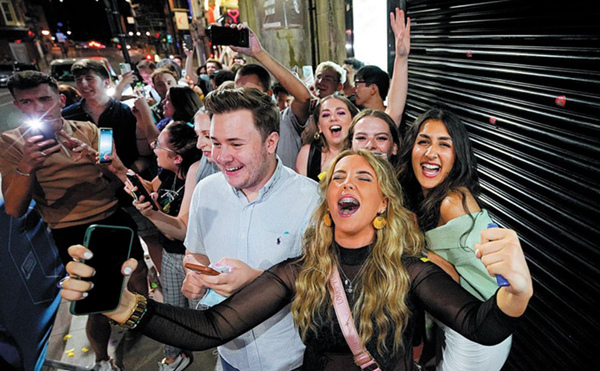 As regras de distanciamento social n?o se aplicam mais e as máscaras deixaram de ser obrigatórias, embora a Transport for London, órg?o responsável do governo local para a maioria dos aspectos do sistema de transporte em Londres, diga que elas continuam sendo obrigatórias para passageiros e muitas lojas exijam que sejam usadas máscaras.