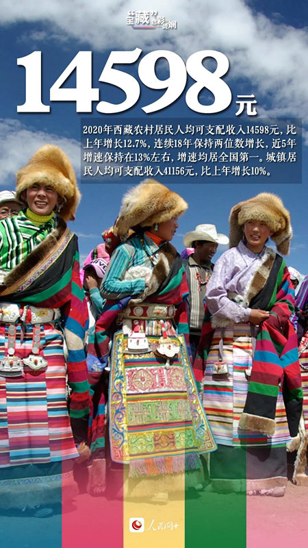 Em 2020, a renda disponível per capita dos residentes rurais no Tibete foi de 14.598 yuans, um aumento de 12,7% em rela??o ao ano anterior. A regi?o mantém um crescimento de dois dígitos por 18 anos consecutivos. A taxa de crescimento permaneceu em cerca de 13% nos últimos cinco anos, ocupando o primeiro lugar no país. A renda disponível per capita dos residentes urbanos foi de 4.116 yuans, um aumento de 10% face ao ano anterior.