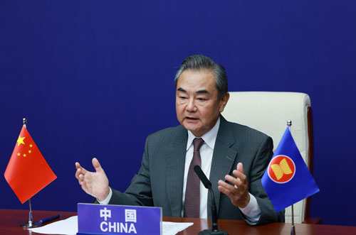 Wang também pediu que os países da ASEAN continuem o diálogo pela paz para responder aos desafios dos assuntos críticos regionais. "A China está disposta a concluir o Código de Conduta no Mar do Sul da China que seja efetivo, substancial e de acordo com as leis internacionais, incluindo a Conven??o das Na??es Unidas sobre o Direito do Mar".