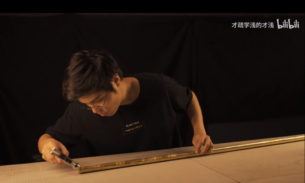 Comparado com a máscara dourada, o acabamento do cetro foi mais complexo. “Devo primeiro afirmar que sou apenas um amador, n?o um especialista, e que, por isso, n?o posso ser rigoroso. Meu propósito n?o é imitar as relíquias culturais, mas recriar os métodos de produ??o o máximo possível”. Cai afirma que o produto acabado visou ser o mais fiel possível face ao original.