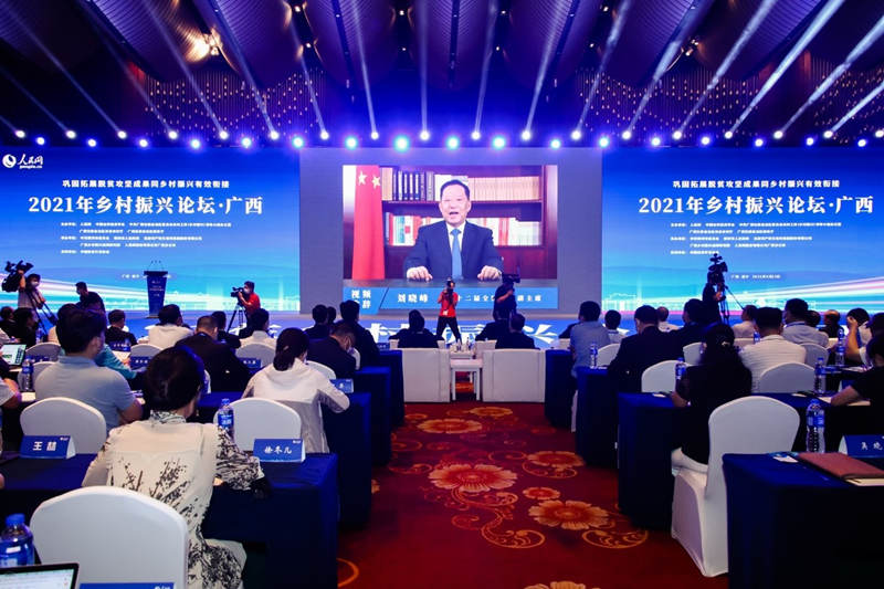 Liu Xiaofeng, vice-presidente do 12o Comitê Nacional da Conferência Consultiva Política do Povo Chinês (CCPPCh), faz o discurso de abertura no Fórum de Vitaliza??o Rural 2021 em Nanning, Regi?o Aut?noma da Etnia Zhuang de Guangxi, em 13 de setembro de 2021. (Foto: Diário do Povo Online)