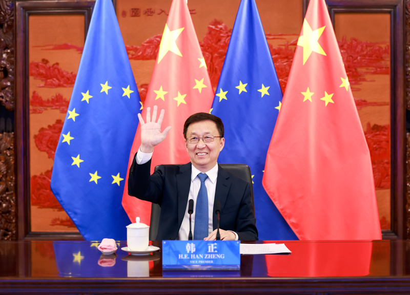 O vice-primeiro-ministro chinês, Han Zheng, e o vice-presidente executivo da Comiss?o Europeia para o Pacto Verde Europeu, Frans Timmermans, realizaram nesta segunda-feira através de videoconferência o segundo Diálogo de Alto Nível sobre Meio ambiente e Clima entre a China e a Uni?o Europeia (UE) e ambas as partes concordaram em aprofundar a coopera??o ecológica.