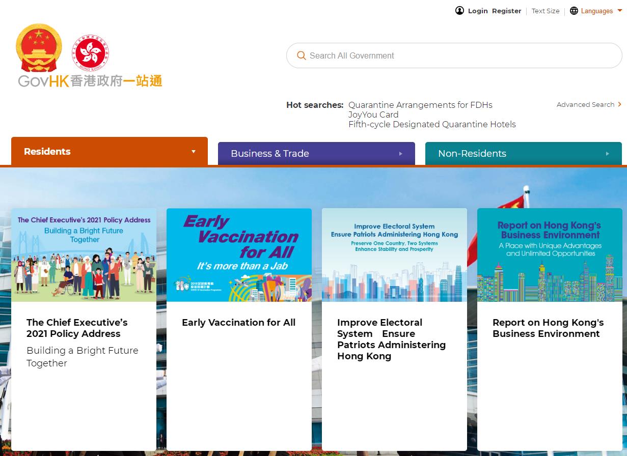 O desenho do emblema nacional deve ser usado nos sites do governo RAEHK, do LegCo e do judiciário.