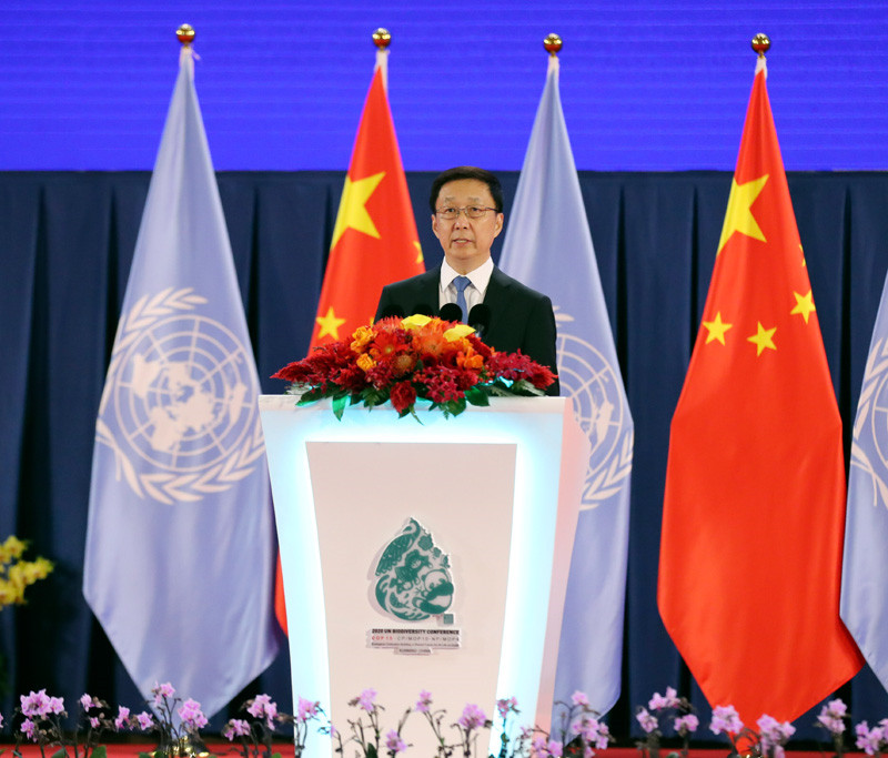 O vice-premiê chinês, Han Zheng, pediu nesta segunda-feira esfor?os para promover consensos e estrutura de a??o abrangentes, equilibrados, fortes e implementáveis, de modo a elevar a governan?a global da biodiversidade a um novo patamar.