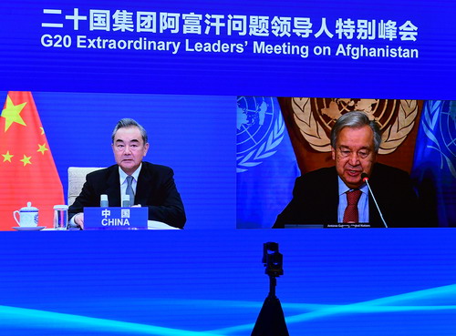 Wang, também conselheiro de Estado e ministro das Rela??es Exteriores da China, fez os comentários por videoconferência em uma cúpula extraordinária dos líderes do G20 sobre a quest?o do Afeganist?o.