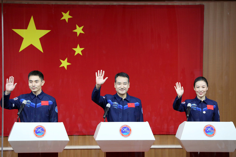 A Shenzhou-13 levará três astronautas -Zhai Zhigang, Wang Yaping e Ye Guangfu- ao espa?o para a constru??o da esta??o espacial da China.