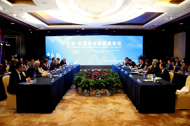 Fazendo parte de uma série de atividades de comemora??o do 25o aniversário da gemina??o entre Jiangsu e Minas Gerais, os dois eventos se focaram na promo??o do ambiente de investimento econ?mico e comercial do Brasil, especialmente no Parque Industrial do XCMG Brasil. As atividades visaram ajudar Jiangsu a promover a Iniciativa do “Cintur?o e Rota”. Um total de 50 representantes das empresas brasileiras e de Jiangsu, incluindo grupo XCMG, Hengtong Group, China Medical City, Vale, Jiangsu Vanguard e JBS, reuniram-se em Nanjing para discutir as diferen?as do ambiente comercial entre a China e o Brasil, compartilhando a experiência de desenvolvimento e explorando oportunidades de coopera??o e de investimento.