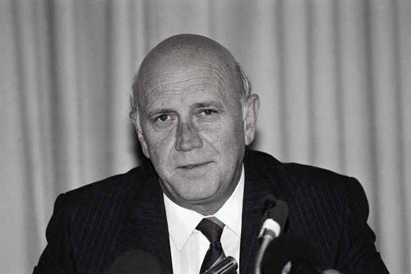 De acordo com as informa??es da AFN, o ex-presidente sul-africano, Frederik Willem de Klerk, morreu com 85 anos de idade. Sendo o último chefe de Estado da era do apartheid da áfrica do Sul, recebeu o Prêmio Nobel da Paz em 1993, juntamente com Mandela, outro ex-presidente do país.