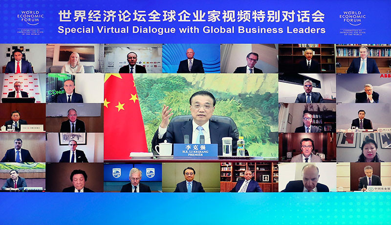 Li deu as declara??es ao discursar em um diálogo virtual especial com líderes empresariais globais, organizado pelo Fórum Econ?mico Mundial na ter?a-feira. Cerca de 400 empresários de mais de 40 países participaram da reuni?o.