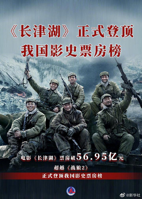 O épico de guerra chinês "A Batalha no Lago Changjin" venceu “Lobo Guerreiro 2” para ser o filme de maior bilheteria da história chinesa na quarta-feira (24).