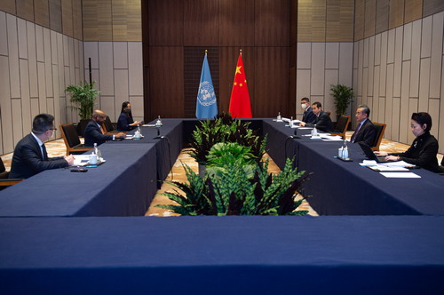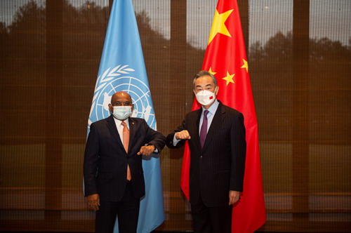 O conselheiro de Estado e ministro das Rela??es Exteriores da China, Wang Yi, reuniu-se na quinta-feira (25) com Abdulla Shahid, presidente da 76a sess?o da Assembleia Geral das Na??es Unidas (AGNU) e ministro das Rela??es Exteriores das Maldivas.