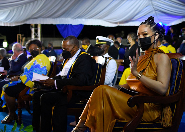 Segundo informou a Reuters, a cerim?nia foi realizada na ter?a-feita em Bridgetown, capital de Barbados, que também é a terra natal da cantora Rihanna. Rihanna foi convidada a participar da cerim?nia e foi declarada heroína nacional do país.
