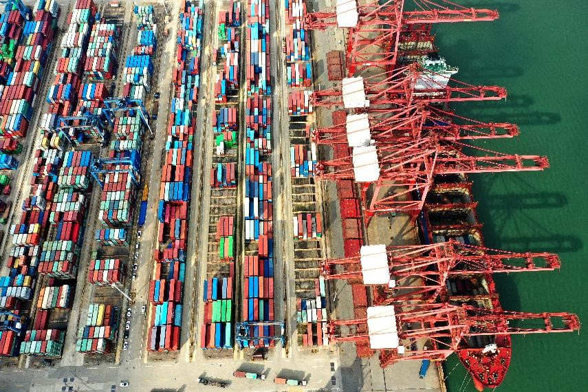 Navio transoceanico no terminal de contêineres do porto de Lianyungang, província de Jiangsu. Foto: Wang Chun, Diário do Povo Online