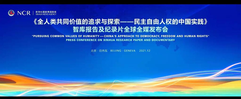 New China Research (NCR), think tank da Agência de Notícias Xinhua da China, divulgou nesta ter?a-feira um relatório intitulado "Perseguindo Valores Comuns da Humanidade -- Abordagem da China para Democracia, Liberdade e Direitos Humanos".