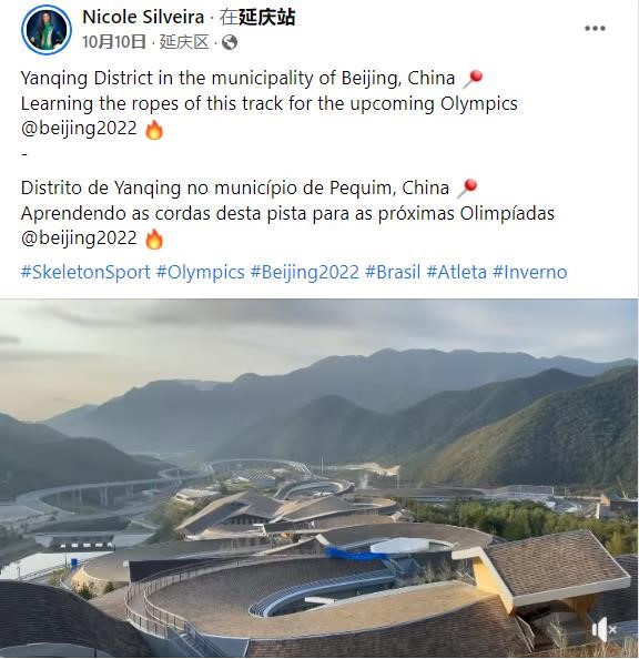 Quando pisou na pista de teste de skeleton dos Jogos Olímpicos de Inverno de Beijing 2022, a atleta Nicole Silveira mal conseguiu conter o entusiasmo. "Quando estava no Centro Nacional de Trenó e Luge em Yanqing, cercada por montanhas e colinas, fiquei impressionada com a imensid?o do local", disse a atleta brasileira de skeleton.