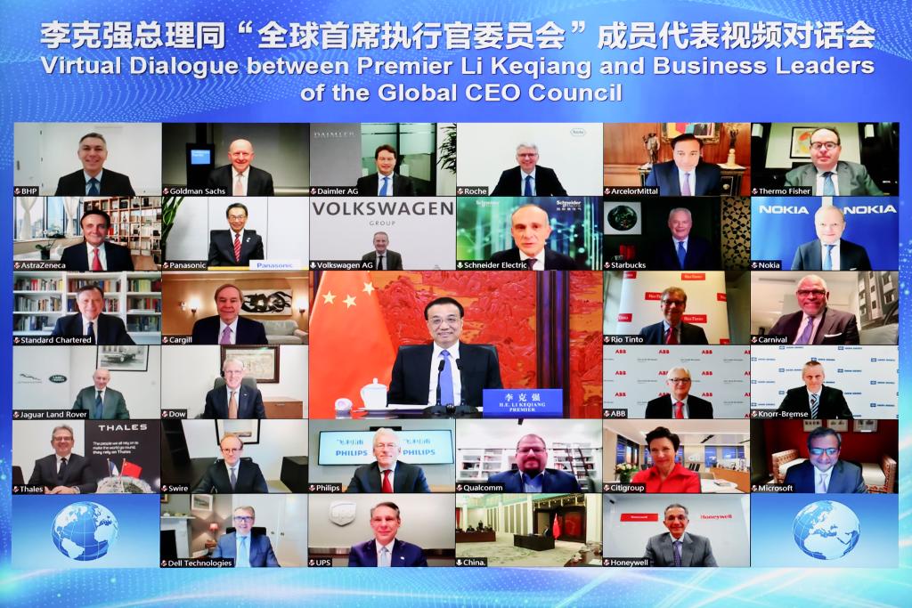 O premiê fez as declara??es ao participar do diálogo virtual com líderes empresariais do Conselho Global de CEO em Beijing.