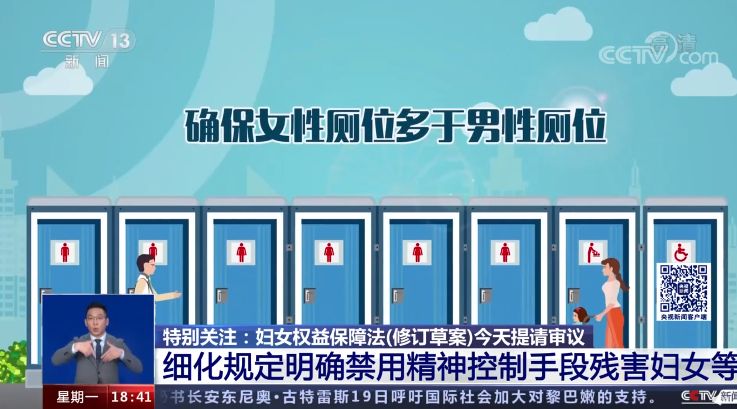 A Lei da República Popular da China sobre a Prote??o dos Direitos e Interesses das Mulheres (Vers?o Revisada) foi submetida à Assembleia Popular Nacional para delibera??o hoje. Ao planejar, construir infraestruturas e fornecer servi?os públicos, os governos em todos os níveis dever?o garantir que há mais banheiros femininos do que masculinos e uma aloca??o razoável destas infraestruturas públicas.