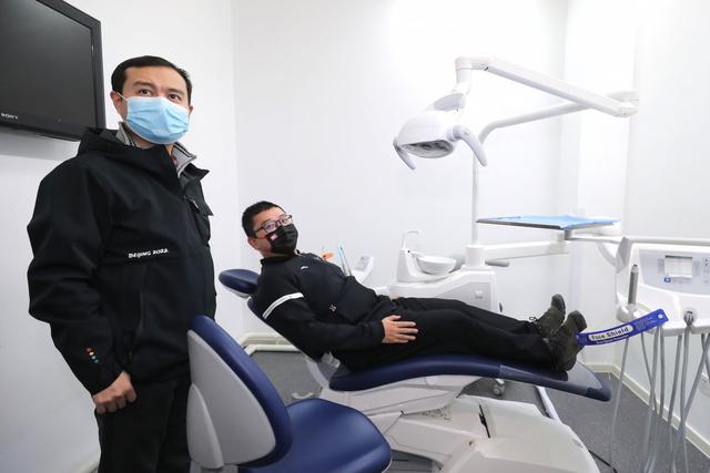 A Wukesong Arena é um dos locais de hóquei no gelo para os Jogos Olímpicos de Inverno de Beijing. A apenas 35 metros do campo de hóquei no gelo, há uma sala de odontologia especialmente projetada como parte do servi?o de assistência médica olímpica.