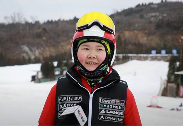 A atleta-mirim chinesa de oito anos, Wang Yibing, da província de Shandong, no leste da China, ganhou vários títulos nacionais de esqui júnior e espera assistir aos Jogos Olímpicos de Inverno.