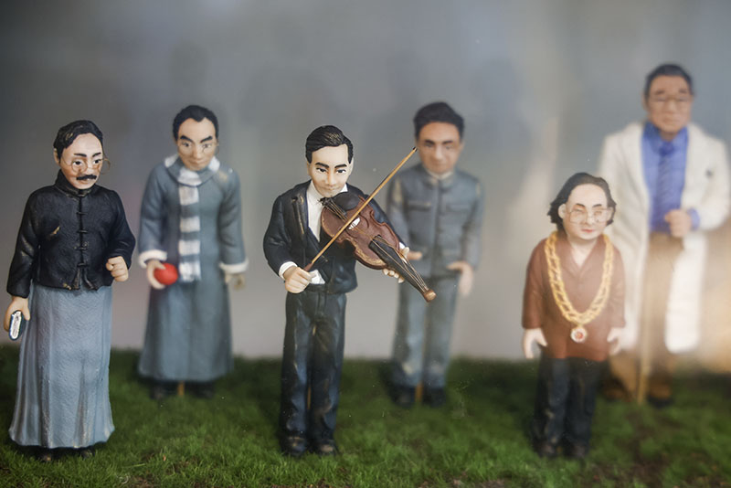 Esculturas de massa de uma série de celebridades históricas feitas por Lang Jiaziyu, em 24 de dezembro de 2021. (Foto: Peng Yukai / Diário do Povo Online)