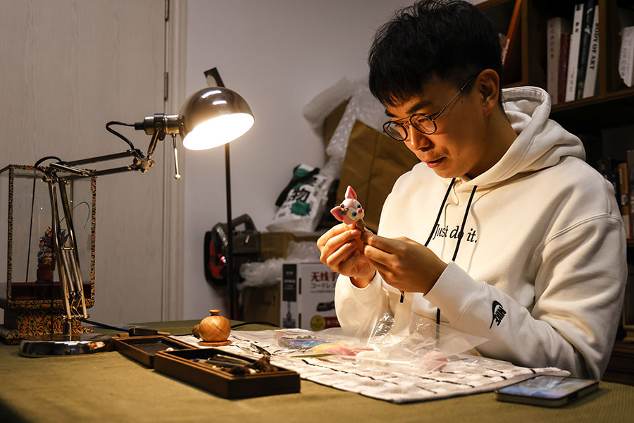 Entrando na oficina de Lang Jiaziyu em Beijing, pode-se ver vívidas estatuetas e certificados de honra cuidadosamente colocados na bancada. No entanto, é difícil imaginar que este herdeiro de terceira gera??o do patrim?nio imaterial de nível nacional da fabrica??o de estatuetas de massa seja um jovem nascido depois de 1995.
