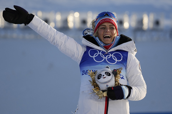A medalhista de ouro olímpica de Vancouver 2010, Therese Johaug, da Noruega, conquistou a vitória no skiathlon 7,5 km + 7,5 km do esqui cross-country feminino, recebendo a medalha de ouro na abertura dos Jogos Olímpicos de Inverno de Beijing 2022, neste sábado.