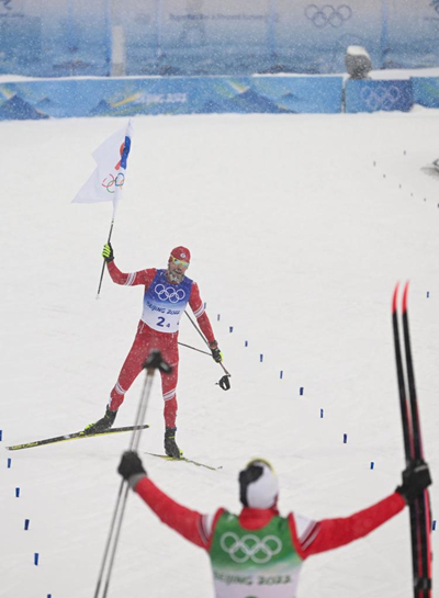 O Comitê Olímpico Russo (ROC) conquistou a medalha de ouro do revezamento 4x10km masculino do esqui cross-country nos Jogos Olímpicos de Inverno de Beijing 2022 neste domingo.