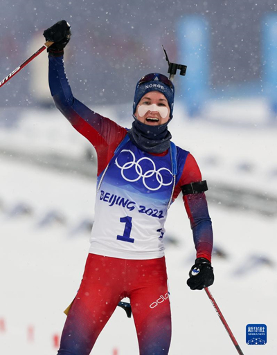 A norueguesa Marte Olsbu Roiseland conquistou sua terceira medalha de ouro em Beijing 2022 após vencer o biatlo de persegui??o feminina de 10 km neste domingo.