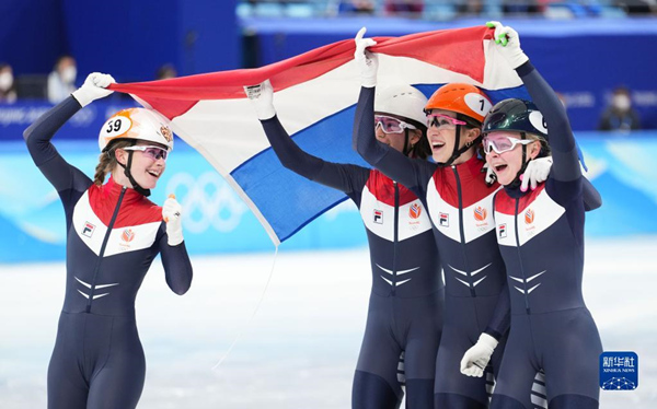 A Holanda, liderada pela tricampe? olímpica Suzanne Schulting, conquistou ouro no revezamento 3.000m feminino de patina??o de velocidade em pista curta com um tempo recorde olímpico de quatro minutos e 3,409 segundos (4'03"409) nos Jogos Olímpicos de Inverno de Beijing no domingo.